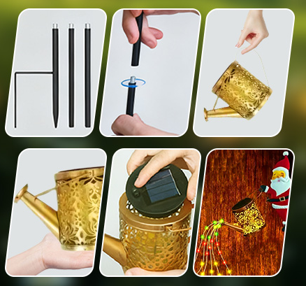 Follow a few simple steps: hang the kettle on the hook, switch it on from the top, and adjust the LED wire to your liking. The light will automatically turn on at dusk — no wiring or tools needed.
